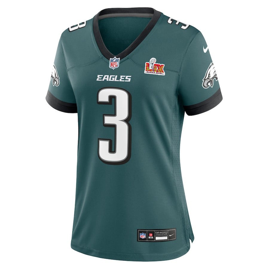 Nolan Smith Jr. #3 Philadelphia Eagles Super Bowl LIX Women’s Jersey – Midnight Green