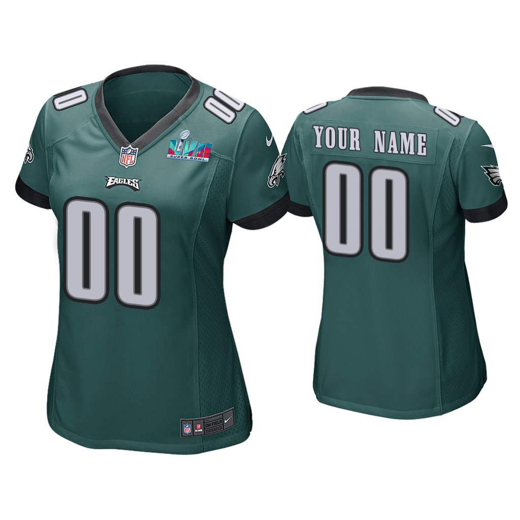 Women Custom Philadelphia Eagles Super Bowl LVII Green Game Jersey