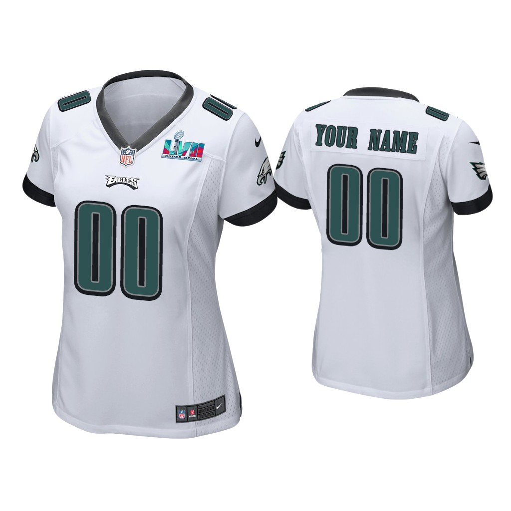 Women Custom Philadelphia Eagles Super Bowl LVII White Game Jersey