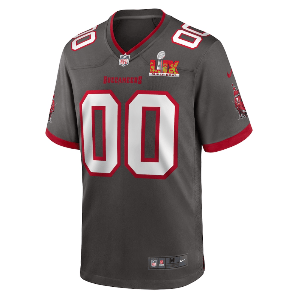Tampa Bay Buccaneers Super Bowl LIX Patch Alternate Game Men Custom Jersey – Pewter
