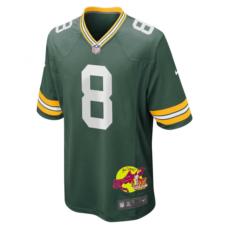 Josh Jacobs 8 Green Bay Packers Super Bowl LIX New Orleans Patch Game Men Jersey – Green