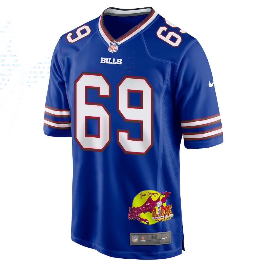 Reid Ferguson 69 Buffalo Bills Super Bowl LIX New Orleans Patch Game Men Jersey – Royal