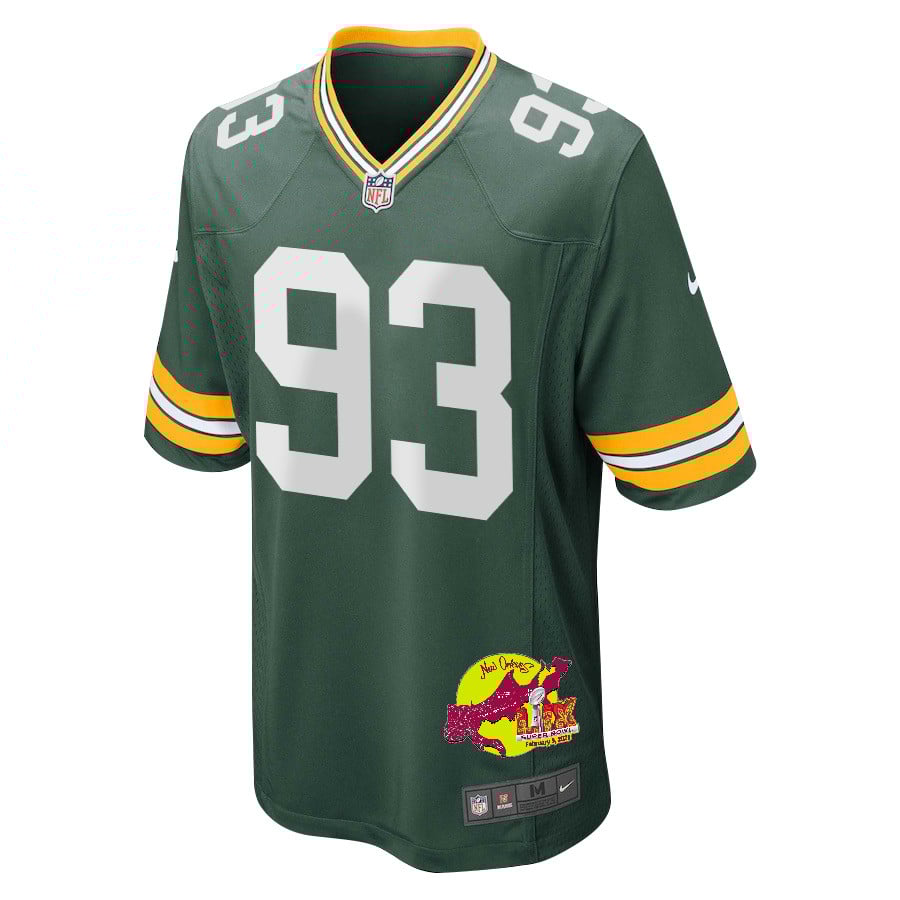 T.J. Slaton 93 Green Bay Packers Super Bowl LIX New Orleans Patch Game Men Jersey – Green